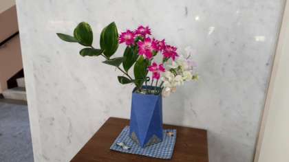事務室前、職員室前にもいつものように、5月の香りを感じる、花花を生けていただいています。