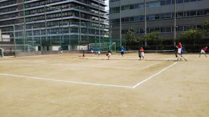 今日は、新北島中学校と今年からできた今宮中学校と合同練習試合を行っています。