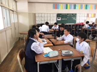 1年1組、2組の様子です。全校集会での校長先生や生徒会、代表生徒のお話や発表を受け、「東中からいじめをゼロ」にするために、自分たちは何をしていかなくてはならないかをしっかりと考えています。