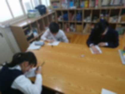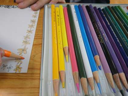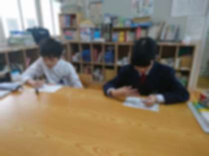 5限目。静かに硬筆に取り組んでいます。字形に気をつけて文字を書いたあとは、イラストも描いています。