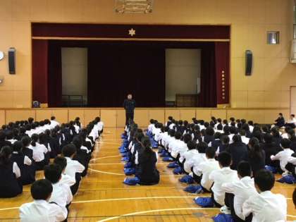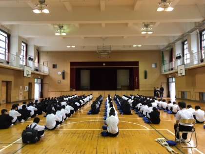 今日は北村先生から一泊移住に向けて、話がありました。1年生の初めての大きな行事です。それを成功させるため、人の話をしっかり聞くことができるように、そして挨拶をきっちりできるように、一人一人が意識をして取り組みましょう。そして、周りの人に対して親切に接することができるようになりましょう!