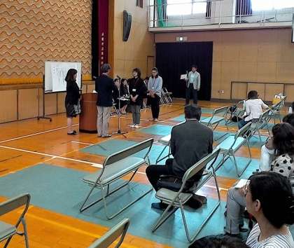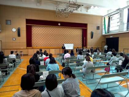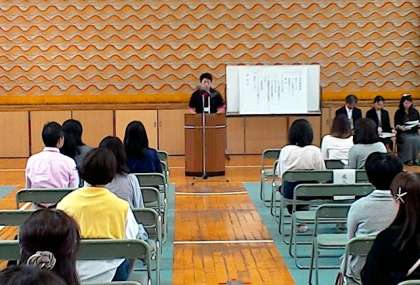 授業参観の後、PTA予算総会が体育館で開催され、事業案及び予算案等の審議がなされるとともに、委員の方々へ委嘱状が手渡されました。