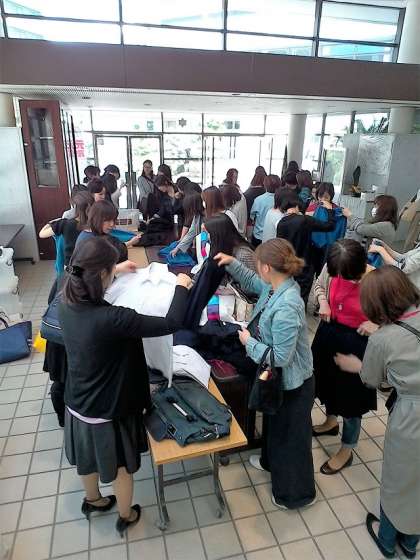 テーブルには標準服や体操服、かばんなどたくさんの品物が並べられていましたが、あっという間になくなってしまいました。