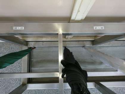 クラスの傘立てに、出席番号のシールを貼ってくださっています。傘を入れる所が出席番号によって分けられていると、入れるときや取り出すときにも迷うことが少なくなり、傘の取り間違いも減りますね。