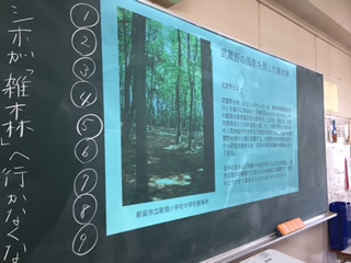 小説に出てくる場所の写真や内容をパソコンやプロジェクターを使って提示しています。