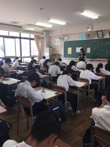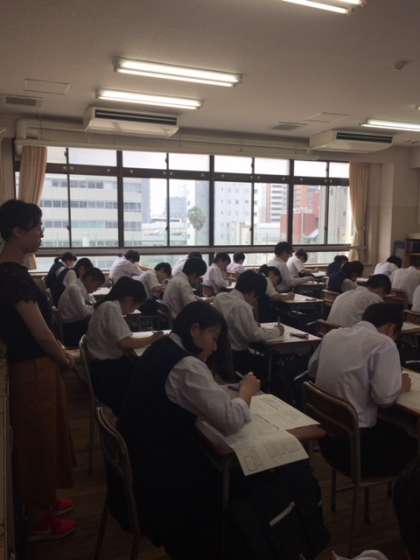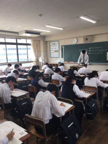 中間テスト2日目、1時間目の英語が始まりました。1年生よりも速くなったリスニングに取り組んでいます。頑張れ2年生!