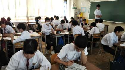 1限目前半の松村先生、難波先生の話を受け、続いて教室に戻り、班活動を行いました。
