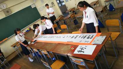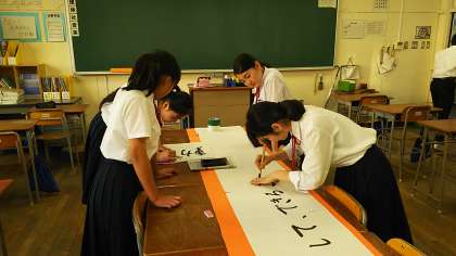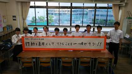 部長会議終了後、有志メンバーが集い、『5・6月 部活動目標』の掲示に取り組みました。