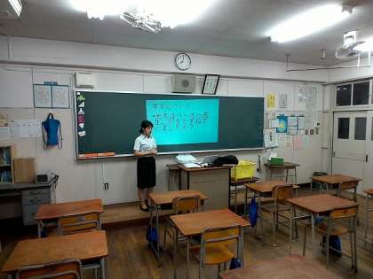 教育実習生の新(あたらし)先生が、熱心に模擬授業をされていました。