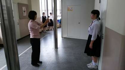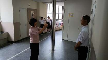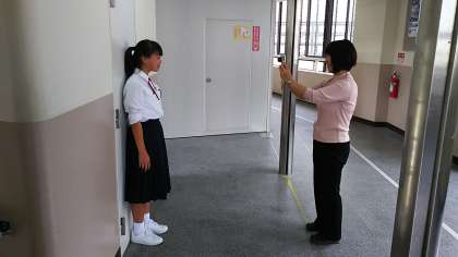 修学旅行の民泊のプロフィールで使用する個人写真の撮影を行っています。