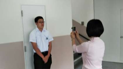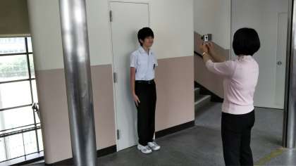 個人写真を撮っています。萩原先生の手際のよさであっという間に3クラス目に入りました!