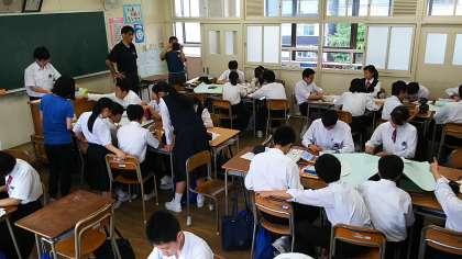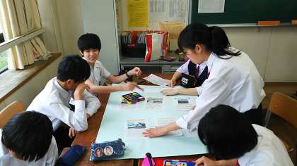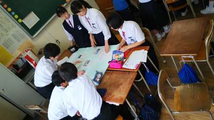 班で協力をして、長崎修学旅行平和学習 班新聞作りに取り組んでいます。