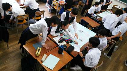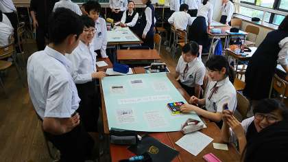 長崎修学旅行平和学習 班新聞作りを通して班の協力体制が形成されていきます。