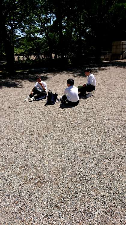 ゴールした班は水分補給をして見学したチェックポイントについてまとめています。
