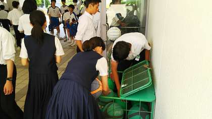 昼休み、生徒会・体育委員会により『ボールの貸し出し』が行われています。運営してくれる仲間への感謝の気持ちをもってしっかりと協力しましょう!