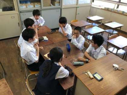 1年生では一泊移住を視野に入れて、現段階での各クラスの現状を話し合い、課題解決に向けて班長や学級代表を中心に取り組む活動を始めました。放課後や昼休みを活用して各クラスで班長会議が開かれています。一泊移住では班長が活動班のリーダーとして様々な活動に取り組みます。当日だけではなく今の準備段階からリーダーとして頑張ってくれています。期待しています!