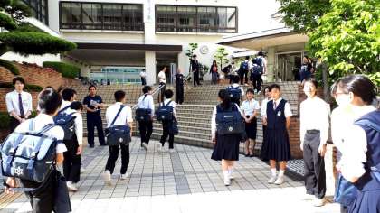 あいさつ運動に取り組む生徒会。自治力、自浄力が確実に高まっています!