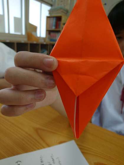 今日の3年学年集会では、修学旅行で平和式典をするにあたり千羽鶴を作るという話がありました。そこで、鶴の折り方をみんなで確認しました。