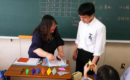 うまくできない人も角井先生の個別指導を受け折り鶴をマスターしました。