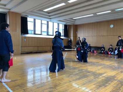 第1試合は男子が4-0で勝利しました。勝負にかける気持ちが全面に出て良い試合です!頑張れ東中学校剣道部!