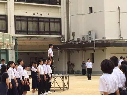 まず始めに、先日の「いじめについて考える日」の取り組みで行われた作文発表、並びに各クラスで取り組んだいじめ防止の川柳の最優秀賞作品を校内表彰しました。