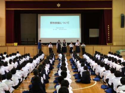 最初は体育館で実行委員会の野外炊飯担当から当日の野外炊飯の流れについて説明がありました。