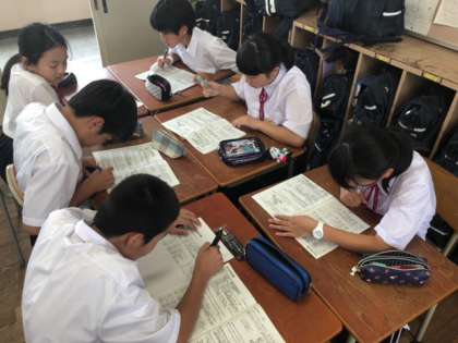 班で話し合ってバスの座席や、野外炊飯の役割決めを班長が中心となって決めています。