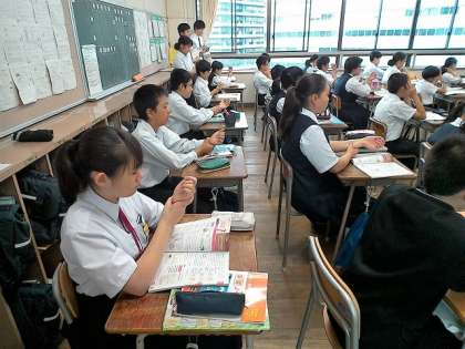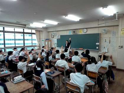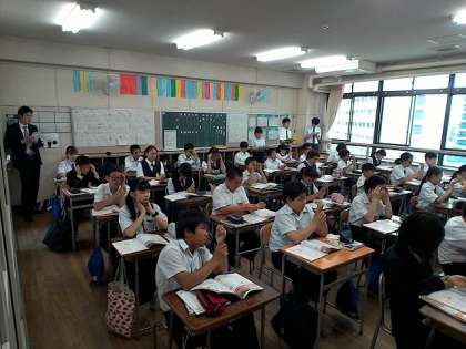 本日2限目の1年5組の教室では、保健体育科の楠田先生の研究授業が行われています。
