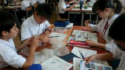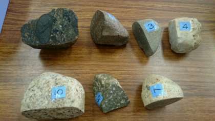 本日は、前単元で学習した12種類の岩石から「実際に川原にある岩石を判別する」課題です。自然史博物館から、大和川水系の川原の岩石をお借りしてきたので、この時期になりました。