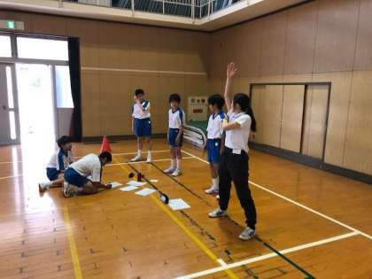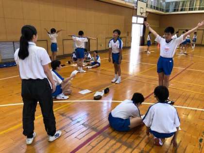 東中体操を熱心に指導されています。ここにも「思いを胸に受け継い東!」が実践されています。授業の最後には体育委員に激励のメッセージが贈られました。