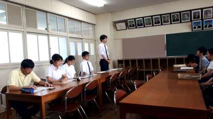 教育実習期間が今日で終了しました。放課後反省会がもたれました。実習生一人ひとりから感想を出していただき、指導していただいた先生方から改めて激励のお言葉をいただきました
