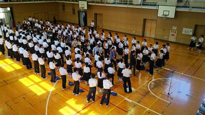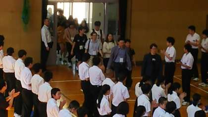 全校集会に続いて韓国 海美中学校歓迎セレモニーが行われます。