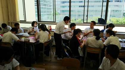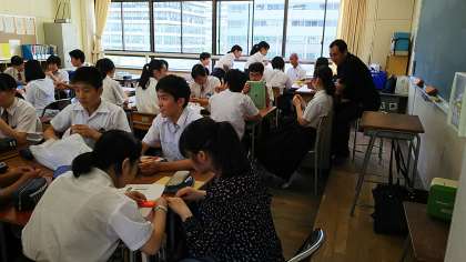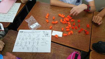 3年修学旅行に向けて取り組んでいる、折り鶴の作成を韓国の海美中学校の皆さんと取り組んでいます。