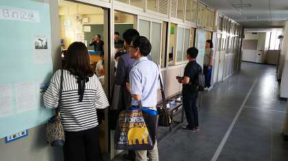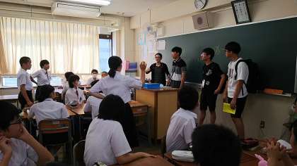 教室では、自己紹介、折り鶴の作成に取り組んでいます。