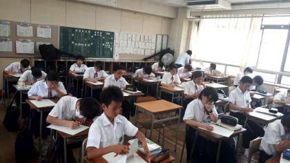 3年生が実力テストにチャレンジしていますが、2年生も頑張っています。数学科の授業で演習問題に取り組んでいます。皆さん真剣です!