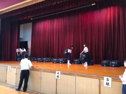 いよいよ、明日に迫った一泊移住も少し天候が心配されますが、33期生は時間通りに登校し荷物を体育館に整理して事前指導の準備が整いました。