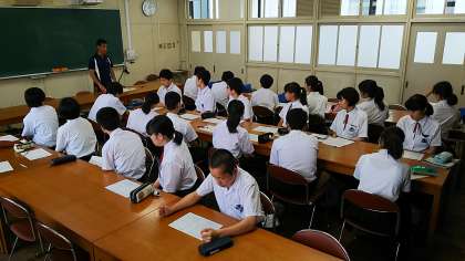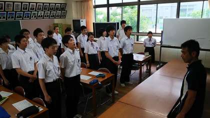 明日の学活で取り組む修学旅行長崎市内フィールドワークでの班行動の説明、緊急時の対応について、小野先生よりお話がありました。集中した会議が行われています。