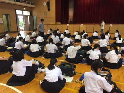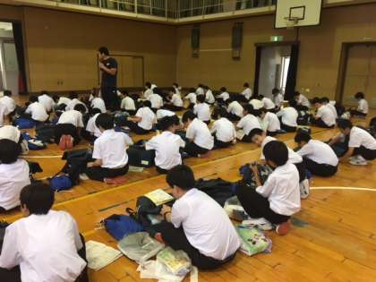 一泊移住の荷物点検を6時間目に行いました。今日忘れた人は明日必ず用意して持って来ましょう!名前も必ず記入しておいてください!