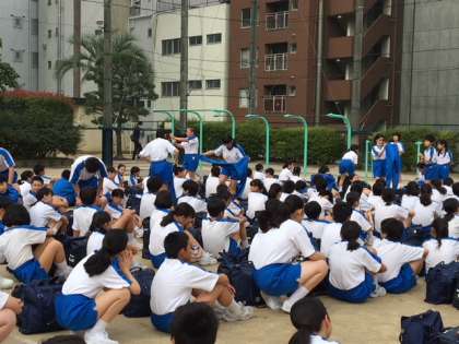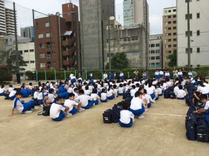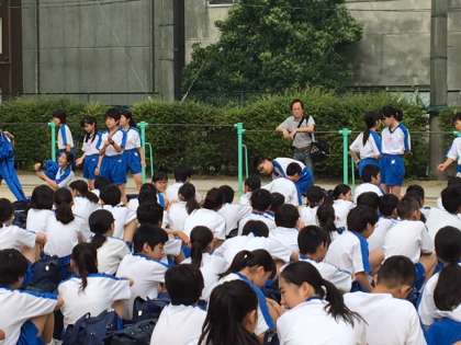 まもなく出発式が行われます。学級代表が声かけしています。