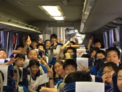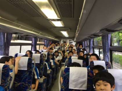 いよいよ出発です!4号車のバスの車内はにぎやかです!ガス科学館へ向かいます。