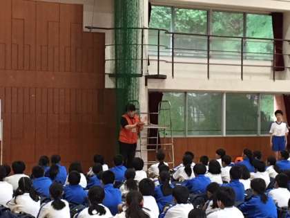 自然の家の職員の方へ挨拶を行い、職員の方から説明をしていただきました。