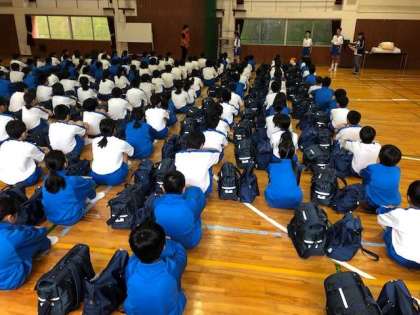 予定時間通りに入所式が始まりました。元気いっぱいのあいさつでスタートできました。