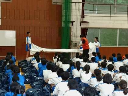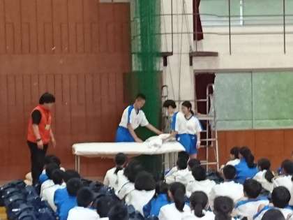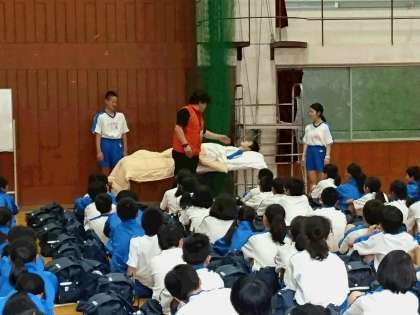 あいさつに引き続き、館内でのルールや布団やシーツの畳み方などを説明していただきました。