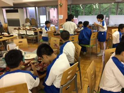 夜の活動の前に腹ごしらえです。オリエンテーリングでお腹ペッコペコになったようですね!みんなもりもり食べています!