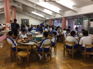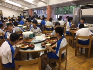 部屋ごとのグループで賑やかに、楽しく、おいしそうに食べてます。