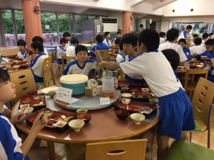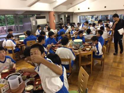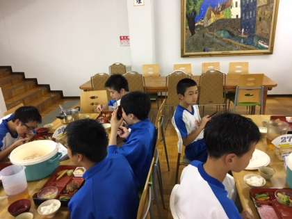 食事の様子です。この後、キャンドルファイヤーを行います。