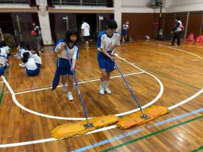 キャンドルサービスも終了し、解散をした体育館では室長会議、美化係会議が行われています。そして実行委員は、体育館をモップがけしてくれています。最後の最後までやり切る姿勢は素晴らしいと思います。君たちの力が随所に発揮され一泊移住の1日目も無事に全行程を終えました。ありがとう!