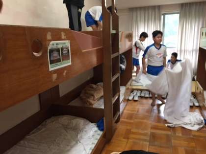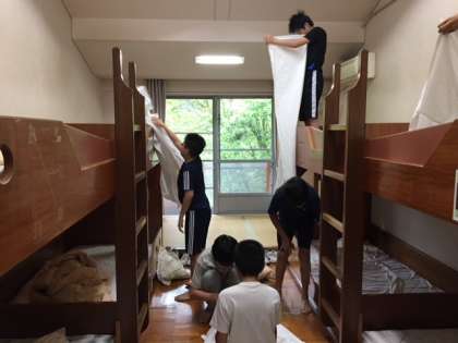 6:30起床後、寝具の片付けを行っています!朝から元気です!