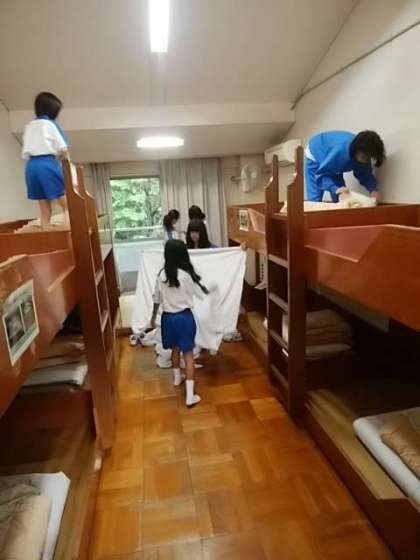部屋の片付け、寝具を整えています。