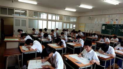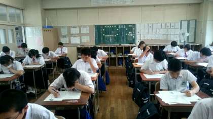 本日ラストの技術・家庭科のテストが行われています。40分の間に技術分野、家庭分野2つのテストに取り組んでいます。時間配分を間違いないように両方のテストを頑張ってください!
